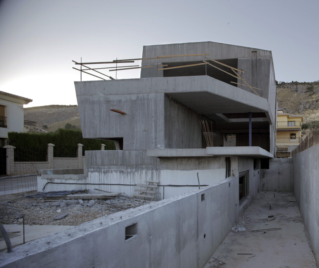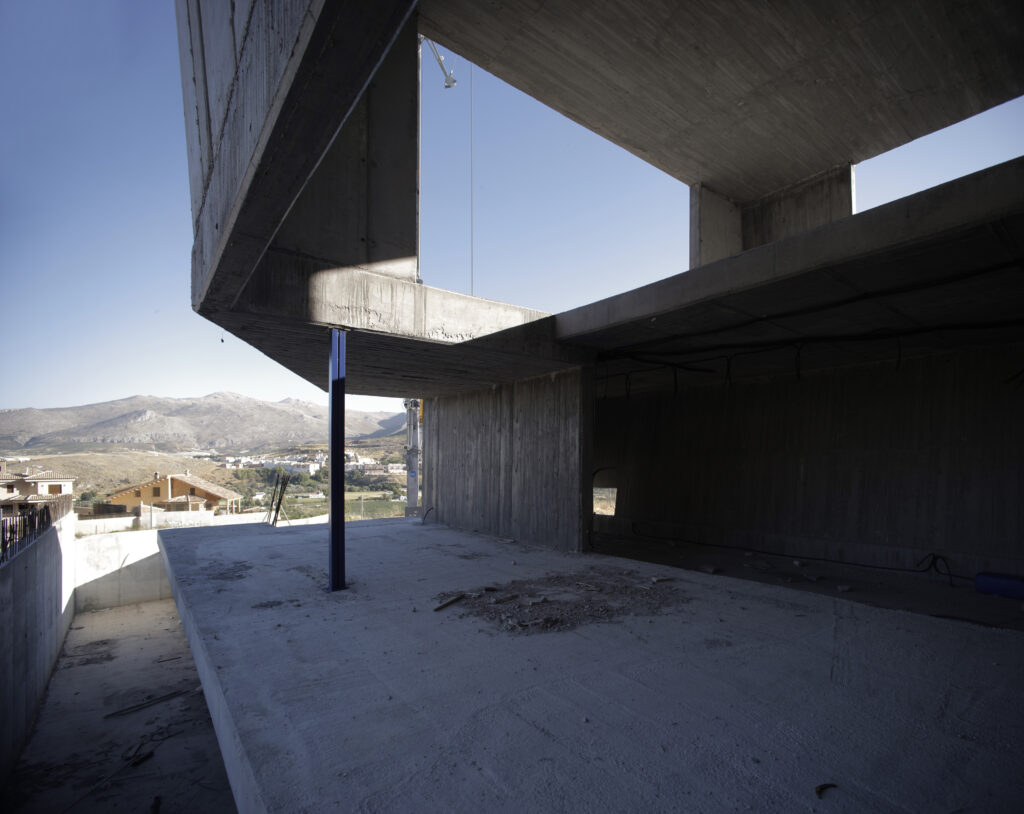 The structure allows the variable shape of the section of the building, built with slurry walls and solid reinforced concrete slabs, which emerges from the mountain as a rock, shaped to be climbed and inhabited.